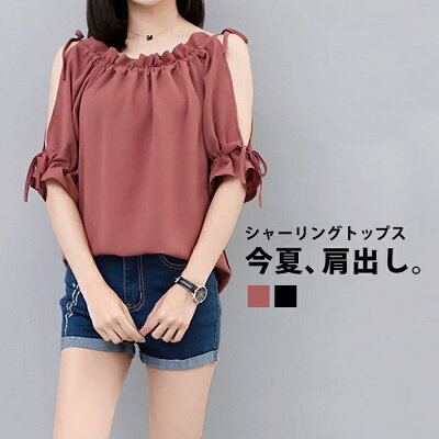 シフォン トップス レディース シフォン ブラウス ノースリーブ フレアスリーブ リボン ギャザー トップス ゆったり 体型カバー ゆるカジ シャーリング セクシー キャンプ フェス 夏 おしゃれ 可愛い 大人 かわいい きれいめ シンプル プチプラ clf-208【P】[□]