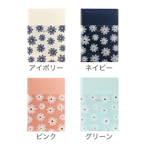 【2021年手帳】B6サイズ 手帳カバー フラワーポケット (アイボリー ネイビー ピンク グリーン)《おしゃれ/大人/かわいい》