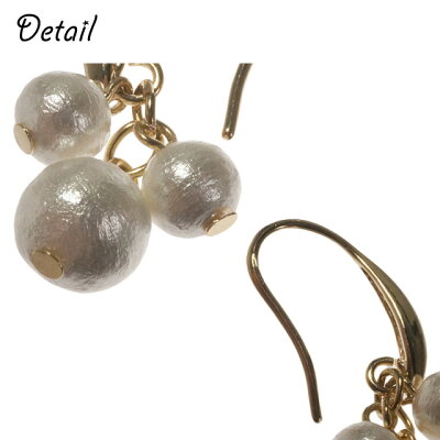 Item Spec 素材 コットンパール 合金(金メッキ) サイズ ◆コットンパールのサイズ:直径約6mm、8mm◆フックの太さ:約1mm 個数 ペアー売り(1組2個セット) 原産国 Made In Japan(日本製) 特徴 3粒のコットンパールが耳元で揺れるフックピアスです。