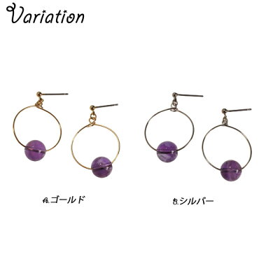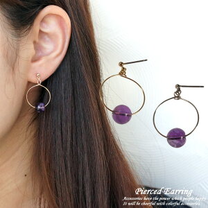 レディースピアス 天然石 アメジスト 輪っか フープ ゴールド シルバー サージカルステンレスポスト スタッドピアス 【フック(チタン/樹脂)orイヤリングへの変更OK 】 金属アレルギー対応 お守り