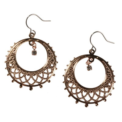レディースピアス ラウンド まる 丸 透かしパーツ ピンクゴールドサージカルステンレスフック フックピアス 【フック(チタン/樹脂)orイヤリングへの変更OK 】 金属アレルギー対応