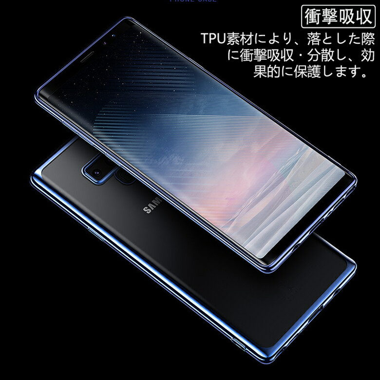 ● Galaxy Note9裏面用メッキ加工TPUケースを特価でご提供!! ● 薄型・軽型ケース、厚さは約0.8mm! ● TPU素材により、落とした際に衝撃吸収・分散し、効果的に保護します。