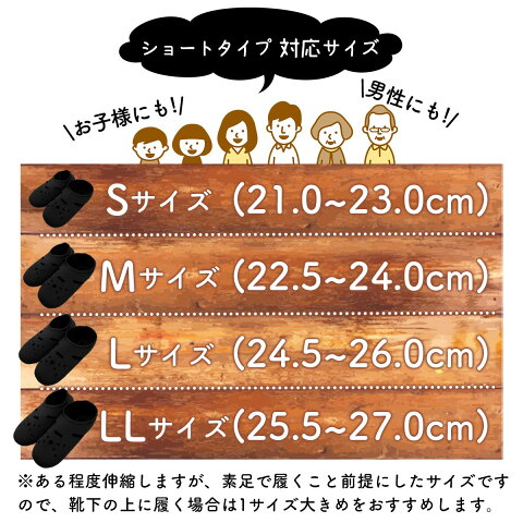 発熱ソックス 適応サイズ S:21.0〜23.0cmM:22.5〜24.0cmL:24.5〜26.0cmLL:25.5〜27.0cm ※初めて履いた時はきつい感じがしますが、伸縮性素材の為 使用者の足サイズに合わせて次第に伸びていきます。