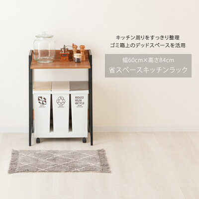 【送料無料】キッチンラック ゴミ箱上ラック キッチンボード 電子レンジラック キッチン収納 作業台 ゴミ箱ラック オープンラック 収納棚 フリーラック ダストボックス 木製 省スペース おしゃれ 幅60 スリム 北欧 ナチュラル ブラウン sd6075